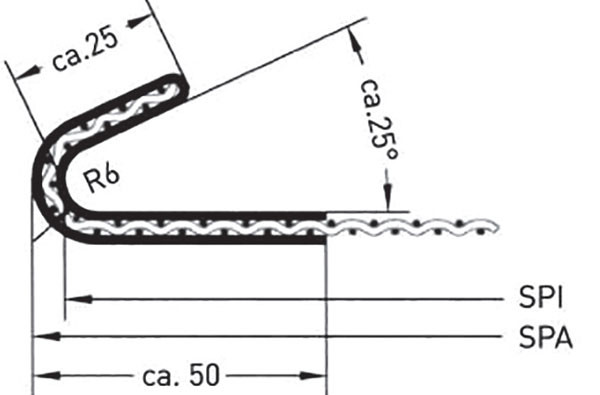 Spi - szita hossza, belső megfeszítés estén